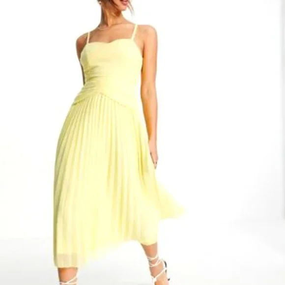 Asos Dresses Asos Pleated Midi Cami Dress Lemon Yellow Us 2 Poshmark